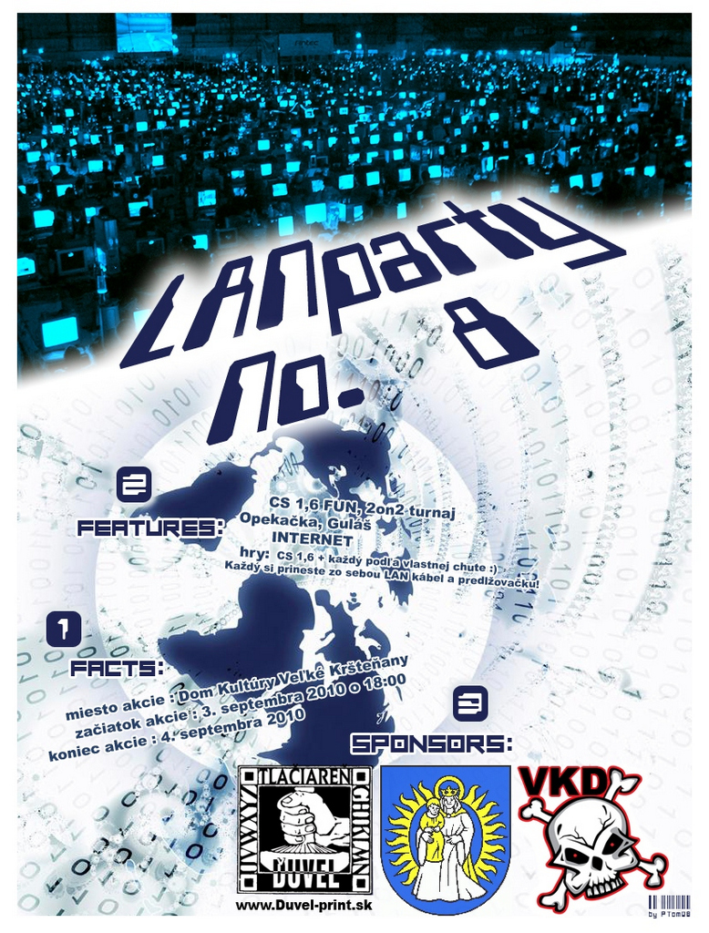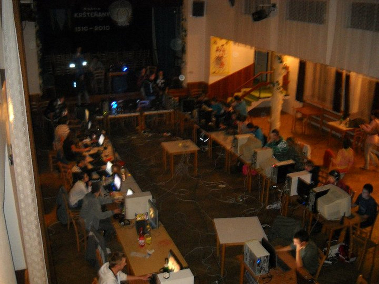 Sme partia nadšencov a kamarátov, ktorí majú radi videohry a informačné technológie a ktorí sa rozhodli spraviť niečo pre ostatných ľudí rovnakej krvi. Začinali sme v roku 2006 v dome kultúry Veľké Kršteňany nultou LANparty na pódiu za oponou počas diskotéky na starých PC s CRT monitormi v počte 6 ks. S každým ďalším poradovým číslom LANparty prichádza viac a viac ľudí a tak sa z mini LANparty stala populárna a jedinečná akcia u nás, ale aj v širokom v okolí. Do roku 2014 sme organizovali LANparty 2x ročne - na začiatku a na konci letných prázdnin, medzičasom sme sa ale stali pracujúcimi a čas nám už pomaly vyplňajú iné aktivity a rodina, ale aj napriek tomu sa snažíme pre Vás zorganizovať LANku aspoň raz ročne počas letných prázdnin.